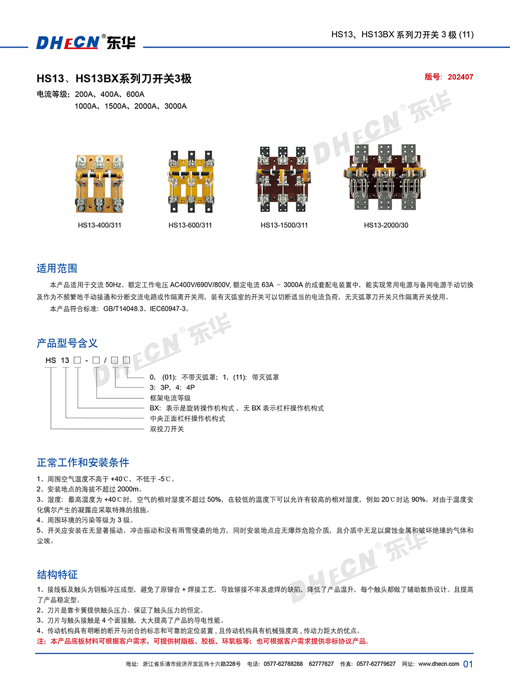 本產(chǎn)品適用于交流50HZ、額定工作電壓AC400V/690V/800V,額定電流63A~1500A的成套配電裝置中,作為不頻繁地手動(dòng)接通和分?jǐn)嘟涣麟娐坊蜃鞲綦x開關(guān)用,裝有滅弧室的開關(guān)可以切斷適當(dāng)?shù)碾娏髫?fù)荷,無滅弧罩刀開關(guān)只作隔離開關(guān)使用。本產(chǎn)品符合標(biāo)準(zhǔn):GB/T14048.3、IEC60947-3。